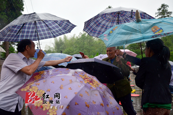 长界村农民冒雨领取贷款信用证