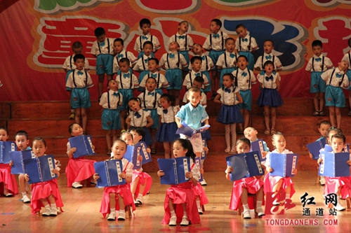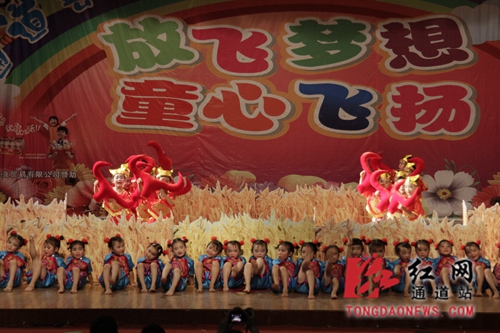 红网通道站6月1日讯(通讯员 唐曾伟)鲜艳缤纷的装扮,天真可爱的笑容。5月29日晚,通道县民族影剧院内张灯结彩,舞台五彩绚丽,800多名小演员欢欢喜喜闹六一,通道县幼儿园正在此隆重举行以“放飞梦想、童心飞扬”为主题的六一文艺晚会。县人民政府副县长龙慢銮,县政协副主席、县教育局张曾顺元出席并观看演出。2000余名观众欣赏了这场幼儿园小朋友是主角的高水平的才艺汇演。