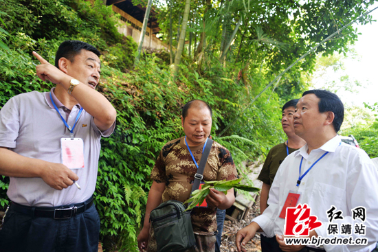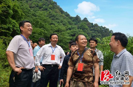 白云山国家级自然保护区植被保护较为完整,是湘、渝、黔交界区石灰岩生境难得的一片绿洲,境内物种丰富,有国家级重点保护动植物85种,其中国家一级保护动植物10种,二级保护动植物75种。湘西州人大代表、白云山自然保护区管理局高级工程师宿秀江沿路详细介绍了白云山的物种情况,并现场指认国家一级保护植物珙桐、伯乐树、南方红豆杉等,调研组在感叹大自然的鬼斧神工的同时,对身边的自然瑰宝也有了更直观更深刻的认识。