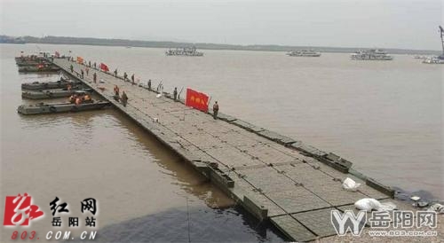 红网岳阳站6月8日讯(分站记者 侯勇 王金)6月5日上午,记者再次驱车来到华容洪山头镇天字一号码头,发现解放军舟桥部队已驻扎于此,并将重型浮桥运至对岸的沉船现场,架起了一座重型浮桥。
