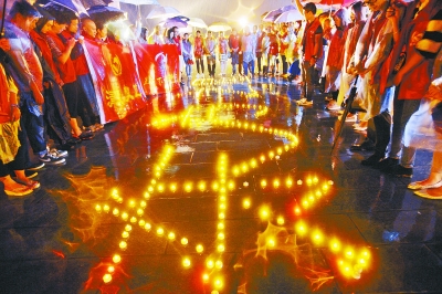 6月7日晚8时,岳阳市各界人士在巴陵广场举行哀悼活动,千余人雨中悼念“东方之星”沉船遇难者。 湖南日报记者 徐典波 李健 摄影报道