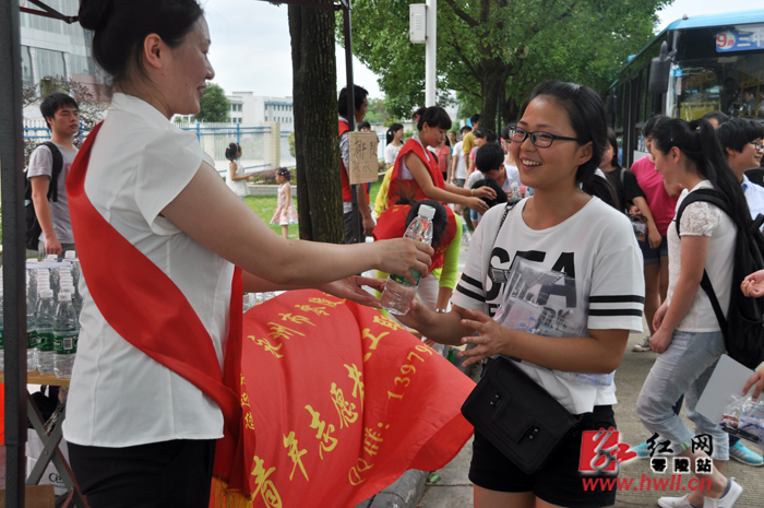 青年志愿者为考生送上纯净水
