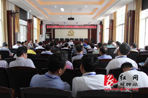 红网双牌站6月8日讯(通讯员 何恒)6月5日,双牌县全面建成小康社会推进会暨重点项目建设调度会在县委会议室召开。会议对前段时间小康工作及2015年度54个重点项目建设工作进行研究调度,安排部署了下阶段工作。苏小康、魏和胜、唐彦、刘红安、廖兴盛、秦小国、刘洁、张少宣、周华等县领导出席会议。会上,分管小康监测指标的县级领导汇报了分管小康监测统计指标工作开展情况;听取了全县重点项目工作情况汇报,县级领导分别进行了表态发言,县委副书记、县长魏和胜安排部署了重点项目建设工作。