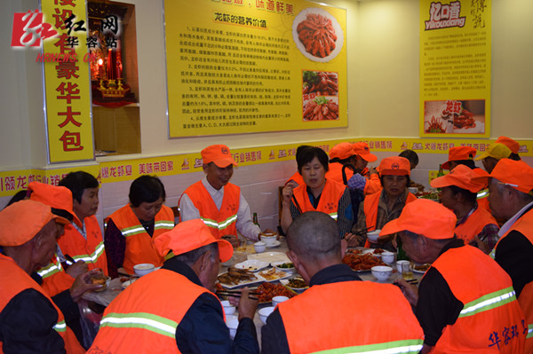 华容县150多名环卫工人免费享用龙虾大餐