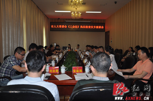 在听取情况汇报后,曾再农对《工会法》在安乡的开展情况给予肯定,认为我县《工会法》宣传积极、组织基本健全、工会履职到位,县委政府重视、县人大监督有力。他指出,《工会法》的贯彻落实要进一步加大宣传力度,针对企业,特别是民营企业等薄弱环节要重点宣传;要进一步健全组织,力争企业建会率也达到100%;工会组织要进一步帮助职工维权,实现民主管理,真正发挥职工代表大会作用,繁荣企业文化,增强企业活力。曾再农希望,安乡县委、县政府进一步加强领导,县人大进一步加强监督,相关单位和部门进一步加强合作,推动《工会法》的全面贯彻实施,促进工会工作全面发展。
