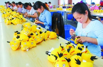 6月11日,工人在加工销往国外的岀口订单玩具。今年,永州市零陵区引进7家企业落户零陵工业园。目前,全区规模以上工业企业已达85家。