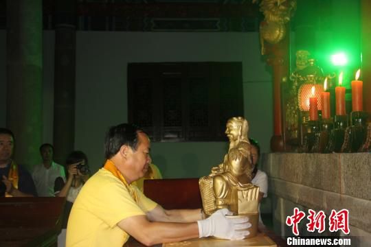 中新网炎陵6月17日电 (通讯员 魏振军 刘洪文)16日,“乙未年神农大帝祖庙圣驾台湾巡境赐福”仪典圆满告竣。当晚,回銮安陛仪式在湖南省株洲市炎陵县炎帝祖陵大殿隆重举行。