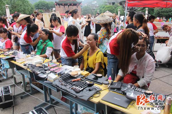 现场,共进行了工艺美术类(芭茅草制作、织锦、蜡染制作、手绘T恤画展示)、旅游服务与管理类(苗鼓、茶艺、餐厅、礼仪展示)、美发与形象设计类(新娘妆造型、美甲、手工作品、盘发及生活妆展示)、学前教育类(手工制作、绘画、书法、刻纸、幼儿舞蹈创编展示)、计算机应用类(热转印技术的应用、包装盒、卡片类项目)共17个技能展示项目。