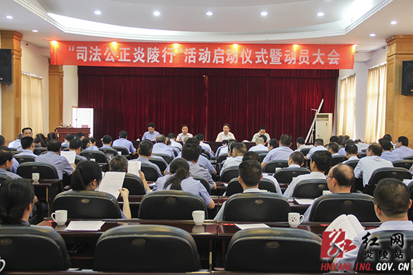 红网炎陵站6月24日讯(分站记者 史天军)为着力加强人大司法监督工作,优化司法工作环境,炎陵县人大常委会决定在全县司法系统开展“司法公正炎陵行”活动。6月24日,活动启动仪式暨动员大会在酃峰宾馆举行。炎陵县人大常委会主任戴诗平出席会议并讲话,县委常委、政法委书记谭新林参加会议。“司法公正炎陵行”活动从今年起,为期三年。今年的活动主题为“司法公开”。主要内容为监督支持各司法部门依法落实审判和执行公开、检务公开、警务公开、所务公开工作,以公开促公正。重点开展人大代表听审评议,审判公开、检务公开调查工作,人大代表执行公开视察、调研等工作。