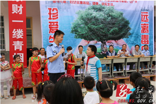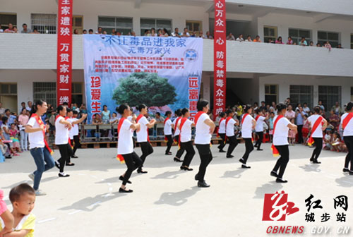 主题活动上,宣读了禁毒倡议书,并举办了禁毒知识抢答赛和文艺表演。在场的师生、家长、村民及禁毒志愿者们通过歌声、舞蹈、小品及抢答赛等多种形式宣传禁毒工作,并纷纷在倡议书上签字。