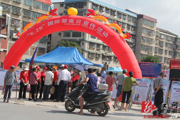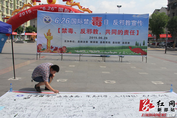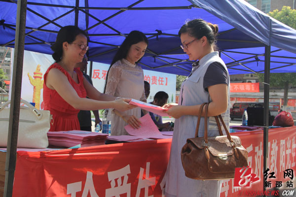 红网新邵站6月26日讯(分站记者 隆清泉)“国际禁毒日”到来之际,6月26日,新邵县开展了主题为“禁毒、反邪教,共同的责任”的禁毒和反邪教集中教育宣传活动。