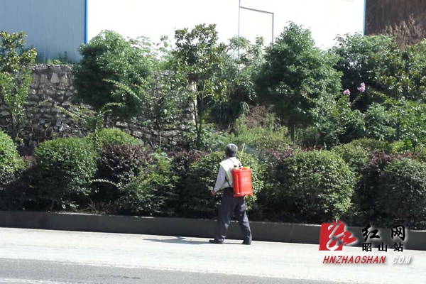 红网昭山站7月1日讯(通讯员 谭稀男 侯觉)夏季是植物害虫易生长的季节,为巩固昭山示范区良好的绿化成果,加强对道路绿化带病虫害预防。6月30日,昭山示范区执法局市政环卫所工作人员对该区主干道两旁的苗木绿化虫害情况进行实地查看,并组织绿化外包公司对红易大道、芙蓉大道两旁的花草植物进行了一次集中防虫工作,喷洒了杀虫剂。
