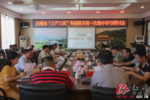 中央决定,今年在县处级以上领导干部中深入开展“三严三实”专题教育。按照中央、省委、市委要求和全县"三严三实"专题教育实施方案,炎陵县在本月开展第一次专题学习研讨。本次学习研讨围绕"严以修身,加强党性修养,坚定理想信念,把牢思想和行动的总开关"的主题展开,重点学习如何坚定马克思主义信仰和中国特色社会主义信念,增强道路自信、理论自信、制度自信;如何站稳党和人民立场,牢固树立正确的世界观、人生观、价值观和公私观、是非观、义利观,忠于党、忠于国家、忠于人民;如何保持高尚道德情操和健康生活情趣,自觉远离低级趣味,树立良好家风,坚决抵制歪风邪气,坚守共产党人精神家园。