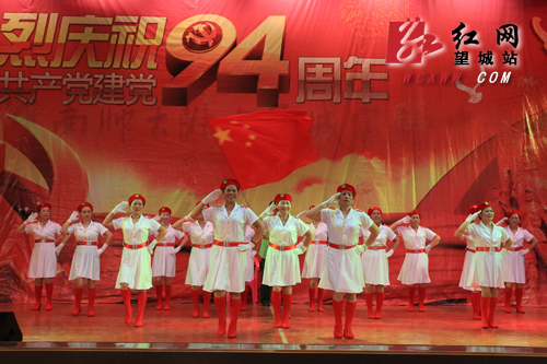 在活动的第二部分文艺汇演中,街道8个村(社区)支部选送了特色的文艺节目,为即将到来的党的生日送上真挚祝福。活泼可爱的孩子拿起手鼓,欢快的舞姿为我们带来了《舞起幸福鼓》;阿姨们则拿起了快板,为我们把《国策民生大事情》给道出来,把《环境卫生靠大家》说进大家的心坎;穿着各式军装的文艺爱好者为我们带来《我们的队伍向太阳》,送上一场中国军装的历史变迁;更有激扬生动的二胡《赛马》表演,让我们仿佛置身于绿色大草原;现代京剧《沙家浜》《智斗》的精彩片段为我们带来别具一格的历史回顾;小品《营养在汤里》让大家明白社会的和谐离不开家庭的和谐。最后在《伟大的祖国更精彩》整齐划一的舞蹈表演中结束了此次庆祝建党94周年党员大会的文艺汇演。整场演出生动地反映了月亮岛街道这两年来取得的可喜变化,抒发了老百姓永远跟党走的坚定信念,表达了群众文艺生活越来越丰富、与国家日渐昌盛密不可分的群众心愿。
