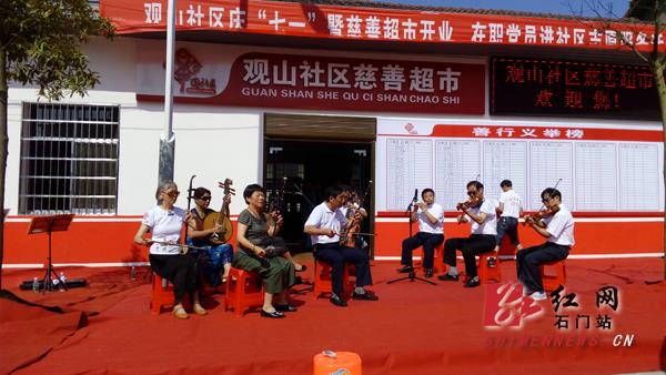 观山慈善超市是石门县第一个以实体店形式促成爱心人士帮助弱势群体、三无人员、特困户、重残家庭的慈善平台。贫困人员的认定由社区联合镇民政所、计生等部门进行前期摸底、调查,并通过入户走访的形式最终确定名单。捐赠按照“善款募集+物品捐赠”的方式进行,所有善款将以面对面送生活必需品的形式捐出,且全程张榜公示,接受群众的监督,同时,此次活动工作经费与爱心款完全剥离,爱心款将全部用于帮扶救助。据统计,此次开市活动共募得善款24652万元、大米1吨、衣服654件、矿泉水40件、书籍4套等。