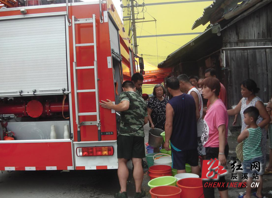 消防大队为华中居民送水现场