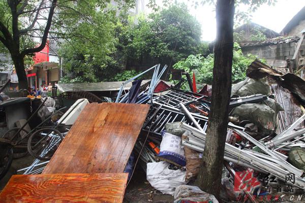 “两违”建筑随意堆放的废品,不仅侵占了人行通道,而且严重影响市容市貌