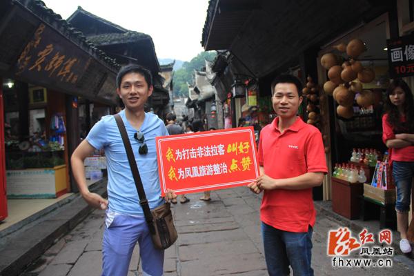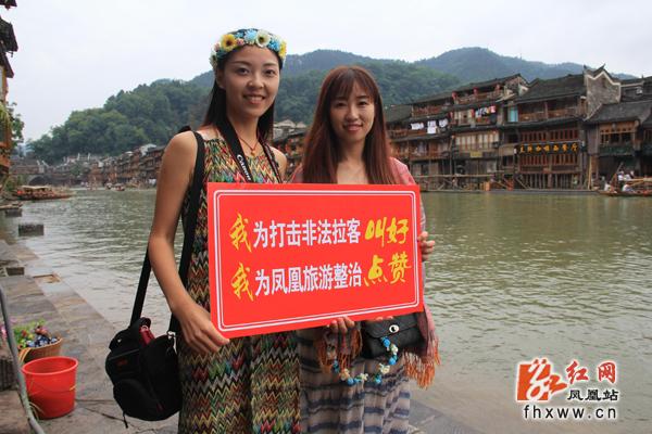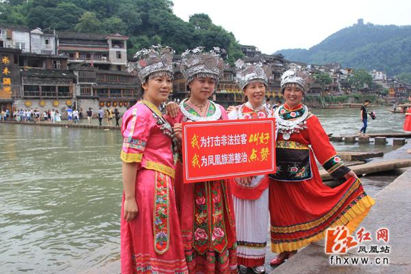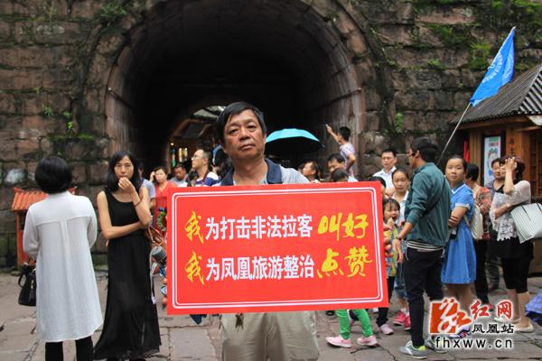 红网凤凰站7月6日讯(分站记者 龙炳忠)7月4日,天气阴凉。来自全国各地的游客们拿着相机、举着自拍杆,在凤凰古城尽情留念。谈到凤凰县打击非法拉客,实施旅游环境整治行动,许多游客拍手叫好,纷纷点赞。为营造文明健康的旅游环境,今年4月以来,凤凰县从县执法局、县旅游局等9个职能部门抽调100多名干部,组成旅游综合执法大队,对扰乱旅游市场秩序的八个乱象进行全面整治。整治后,非法拉客棚子被拆除,非法运营车辆被查处,非法拉客人员被劝戒教育,城区景区非法拉客现象明显减少了,凤凰的景色更美了,游客的心情更好了。