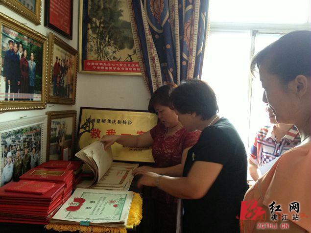 卢妹香详细查看了龚老多年来积累的文稿和资料,并参观了家庭文化室,对龚老的家书、家训表示浓厚的兴趣。她称赞龚老在家庭文化建设、家庭教育方面树立了榜样,耄耋之年还笔耕不辍更是难得,希望能挖掘龚老及其家庭的典型事迹,向全国进行推介。