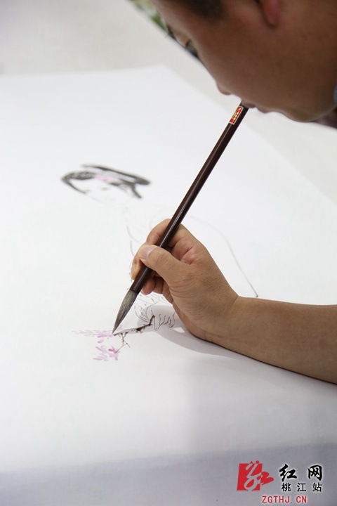 7月8日,中国工艺美术学会会员、省美协会员、桃江县人民政府文艺顾问周易与国内5位美术家受邀来到桃江采风,并现场创作“美人与竹”主题国画作品。