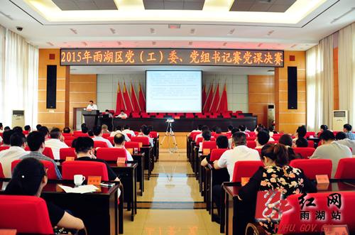 红网雨湖站7月13日讯(分站记者 陈娟)为进一步发挥两级中心组在学习型党组织建设中的龙头作用,在广大党员干部中营造抓学习、强素质、提能力、作表率的浓厚氛围,提升领导干部思想政治和理论素质,雨湖区今年组织开展了“党(工)委、党组书记赛党课”活动。7月10日下午,“党(工)委、党组书记赛党课”决赛在区委中心组学习平台举行,经过择优推荐的10名党(工)委、党组书记参加了决赛,区委书记刘永珍对比赛进行了全面点评。区委副书记、区长何锋,区人大常委会主任罗扬义,区委常委、常务副区长柳军辉,区委常委、组织部长、统战部长周复明,区委常委、政法委书记王振华,区委常委、副区长杨贵,区委常委、区委办主任颜炬,区委常委、宣传部长唐世荣,区委常委、人武部政委邓永洪及全区副县级(含副县级)以上领导和区委组织部、区委宣传部、区直机关工委相关负责人担任比赛评委。区委副书记陈爱民主持活动。