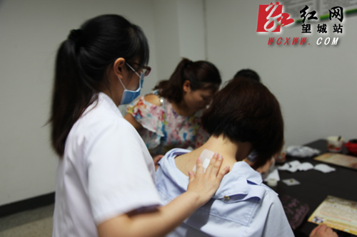 红网望城站7月13日讯(分站记者 姚泽子)又见三伏天,7月13日是今年“入伏”首日,冬病夏治作为夏季养生的重要举措,贴“三伏贴”备受人们追捧。望城区为市民免费提供冬病夏治“三伏贴”贴敷服务,为群众送去健康与清凉,前来医院贴敷“三伏贴”的群众络绎不绝。一大早,医院门诊大厅“三伏贴”服务处就排起了长长的队伍。刚刚贴完“三伏贴”的刘娭毑说,她患有支气管炎,天一转凉就容易咳嗽,冬天还经常感冒,听说“三伏贴”也许能治治这老毛病。医院周院长和她是老乡,几天前就邀请刘娭毑过来参加活动,所以一大早起她就过来排队贴敷了。现在贴完了感觉热热的挺舒服,希望真的有效果。不一会儿,前来贴“三伏贴”的市民越来越多,不少群众还是第一次尝试“三伏贴”治疗,医务人员便耐心地向大家讲解治疗原理。