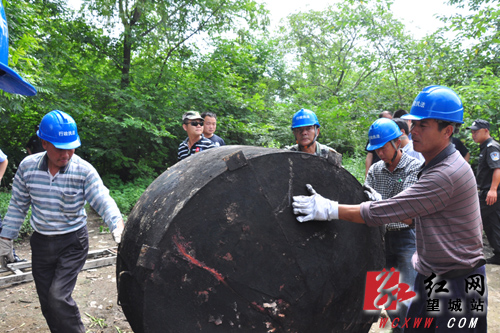 在翻身垸村双建组一处养殖场,工作人员转运用于炼制潲水油的大铁锅。