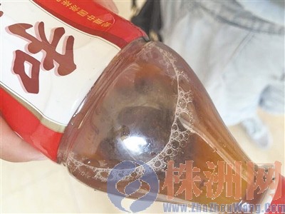 瓶中有一大坨黑色漂浮物(记者 成姣兰 摄)