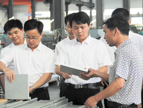 吕凯兴(前左二)深入园区企业,解决企业发展难题。 长沙晚报记者 颜家文 摄