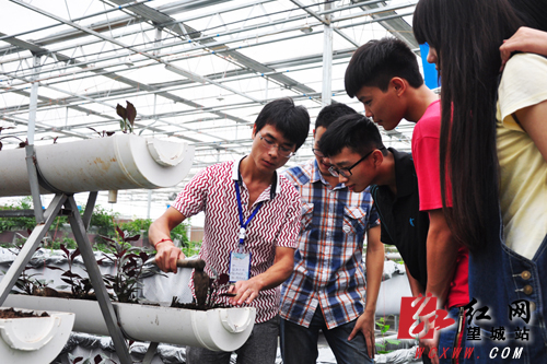 来自湖南农业大学的大学生正在柯柯农业学习无土栽培技术。高亮 摄