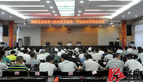 根据全县干部队伍建设的统一部署,今年,湘潭县从市、县、乡镇机关选派92名优秀干部驻村(社区、居委会)担任第一支部书记。其中,市直机关6名、县直机关23名、乡镇63名。本次派选时间从2015年7月至2017年7月,主要到美丽乡村创建村、上级党组织确定的软弱涣散村(社区、居委会)、扶贫帮扶村任职。第一书记在乡镇党委领导和指导下,紧紧依靠村(社区、居委会)党组织,带领村(社区、居委会)“两委”成员开展工作,从派驻村(社区、居委会)实际出发,抓住主要矛盾,解决突出问题,重点履行好建强基层组织、发展农村经济、为民办事服务、提升治理水平四个方面的职责任务。