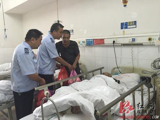 7月21日上午,双清区城管执法局三眼井中队工作人员来到医院,看望前几天在街上摔倒受伤的抗美援朝老兵刘涛,并送上慰问品