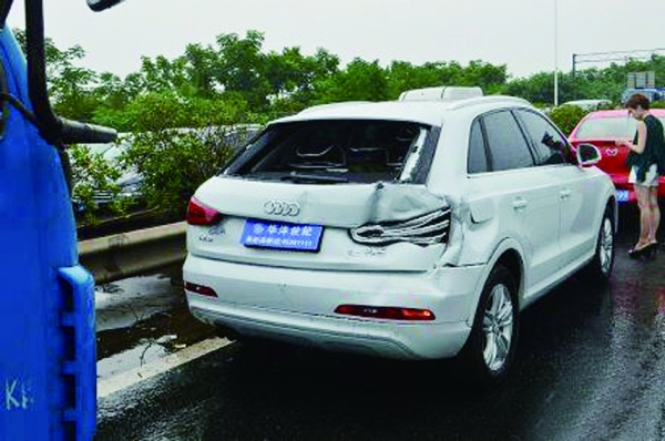 事发地位于长永高速往东18公里处,因施工仅供一个超车道可以通行。7月21日下着阵雨,一辆马自达经过该路段时刹车停了下来,而紧随其后的奥迪车也跟着泊车,没想到最后面的货车没刹得住,造成了三车追尾。