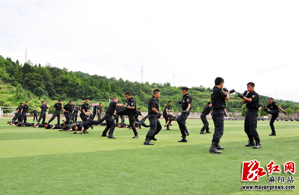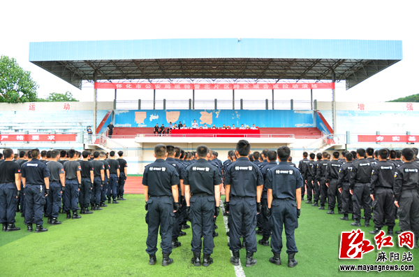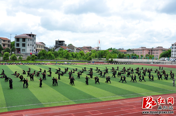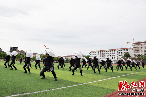 红网麻阳站7月24日讯(通讯员 滕晖)为应对当前严峻复杂的反恐维稳形势,提升公安巡特警远程机动、反恐防暴、应急处突能力,按照怀化市公安局统一部署,7月23日,怀化市公安局巡特警北片区跨区域合成拉动演练在麻阳苗族自治县第一中学运动场内举行。来自麻阳、芷江、辰溪、溆浦、沅陵、新晃六个县的190位巡特警,在当天的合成拉动演练中进行了盔甲服穿戴、警棍盾牌操、格斗操演练。演练过程中,巡特警们展现了良好的精神风貌和过硬基本功,圆满完成了各项演练任务,达到了预期目的。
