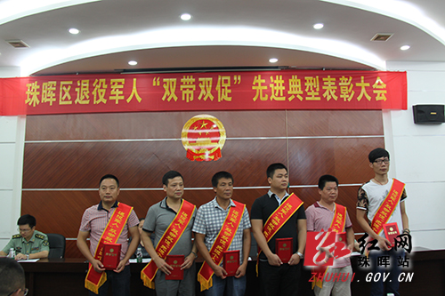 红网珠晖站7月27日讯(分站记者 刘蓓)7月27日,在庄严的国歌声中,衡阳市珠晖区召开退役军人“双带双促”表彰大会。会议对金晓春等6名优秀退役军人予以通报表彰并颁奖,肯定了他们在“带头建设家乡、促进经济发展、带头维护稳定、促进社会和谐”所做出的贡献。