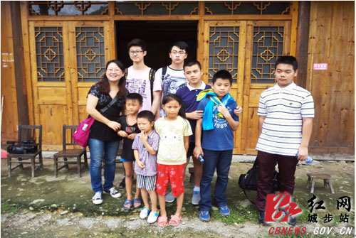 图为华人学子义工与丹口镇留守儿童合影。 罗叶芝摄