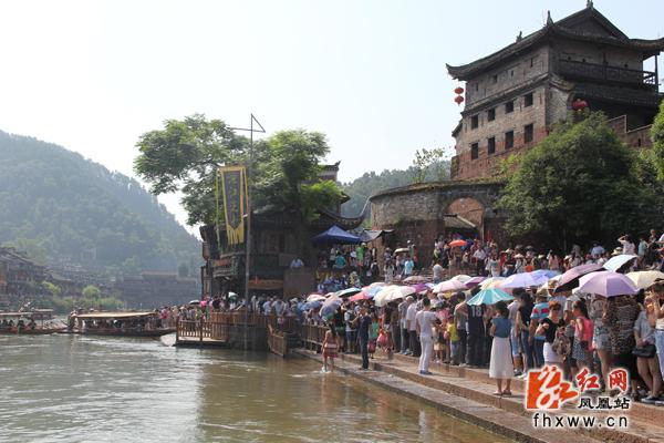 红网凤凰站7月30日讯(分站记者 吴文星 通讯员 王成军)7月29日,凤凰古城迎来暑假旅游高峰。白天,古城古色古香的大街小巷游人如潮,沈从文故居、沱江泛舟、古城博物馆等各大知名景点均排起了长龙;入夜,成群结队的国内外游客纷纷驻足沱江边,在或强或弱、或冷或暖的色调里,品赏夜景,纳凉解暑,如痴如醉,流连忘返。