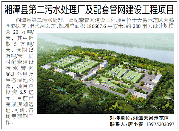 湘潭县第二污水处理厂及配套管网建设工程项目。