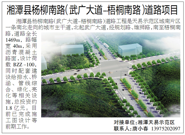 湘潭县杨柳南路(武广大道-梧桐南路)道路项目。