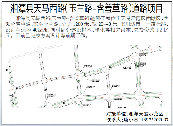 湘潭县天马西路(玉兰路-含羞草路)道路项目。