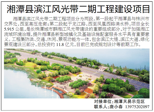 14个项目分别为:湘潭县文体公园建设项目、湘潭县紫荆湖生态新城建设项目、湘潭县滨江风光带二期工程项目、湘潭县农产品精深加工园建设项目、湘潭县住宅产业化建设项目、湘潭县分布式能源建设项目、湘潭县妇幼保健院整体搬迁重建项目、湘潭县第二污水处理厂及配套管网建设工程项目、湘潭县武广大道三期建设项目、湘潭县梧桐南路(黄莺路-海棠路)道路项目、湘潭县杨柳南路(武广大道-梧桐南路)道路项目、湘潭县含羞草路(大鹏西路-武广大道)道路项目、湘潭县天马西路(玉兰路-含羞草路)道路项目、湘潭县花石镇、中路铺镇、石潭镇乡镇污水处理设施项目,