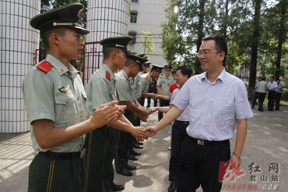 红网君山站8月1日讯(分站记者 王琼 洪伟)7月31日,君山区委书记杨昆,区委副书记、区长谢胜率区五大家领导看望慰问了君山消防大队、区人武部、预备役三团汽车连、岳阳监狱武警支队的官兵们,向广大驻区官兵致以节日的祝贺和诚挚的敬意。