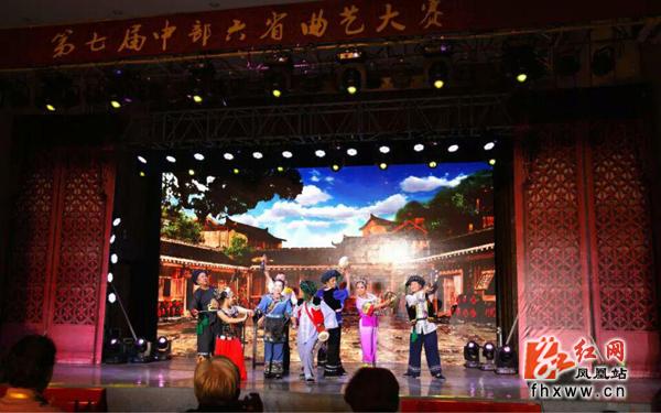 第七届中部六省曲艺大赛于7月28日至30日在郑州举行。共有来自河南、湖北、湖南、山西、安徽、江西六省的23个曲艺节目进入决赛,凤凰县表演的曲艺苗傩鼓词《三接岳母》,描述家庭生活柴米油盐酱醋茶,和和睦睦百姓家、人间真情春常在,三接岳母传佳话。表演采用苗族巫傩说唱的民间演唱形式,以瓮筒为伴奏乐器,唢呐和民间打击乐,声部为多支声复调说唱和帮腔衬托;表演的曲艺茶灯《一目了然》,主要讲述一名迷上邪教的瞎子男子不再参加邪教组织而参加民间说唱茶灯而引发的一系列故事。两个节目旋律优美,地域曲种特点鲜明得到评委一致好评,分别荣获此次大赛二等奖。