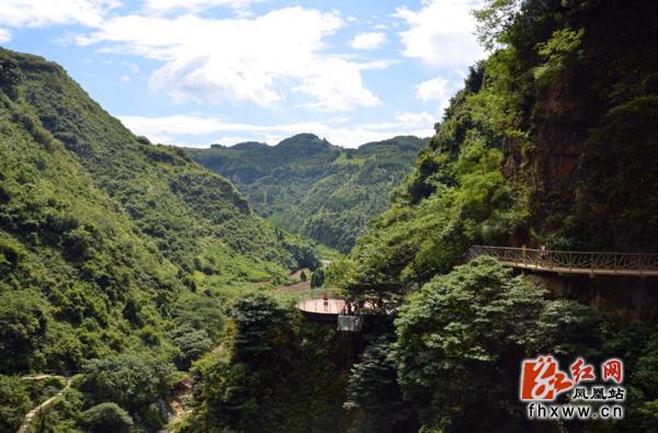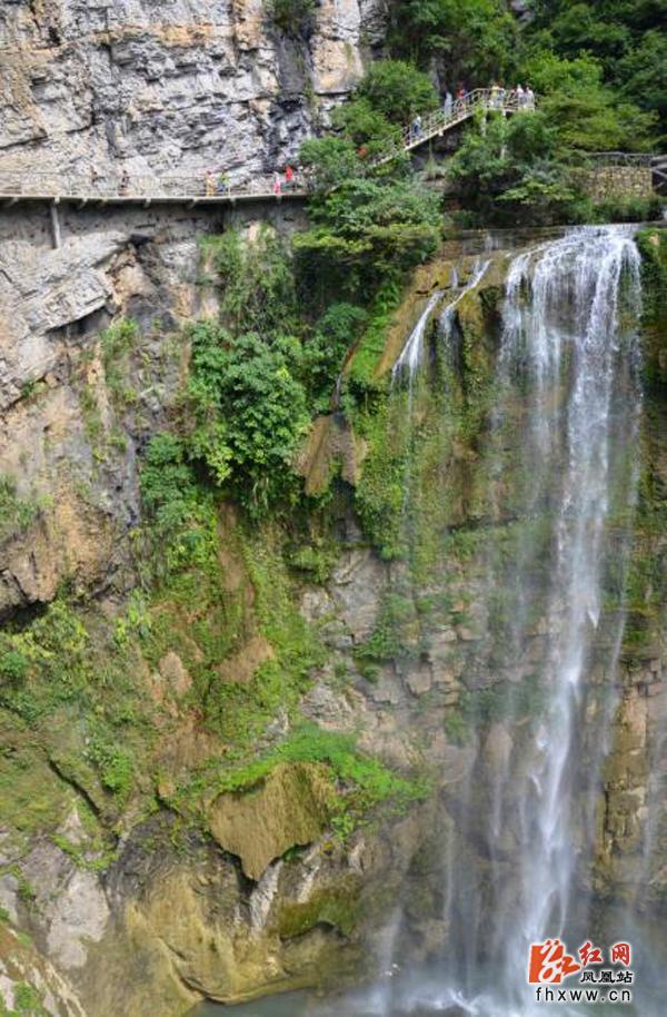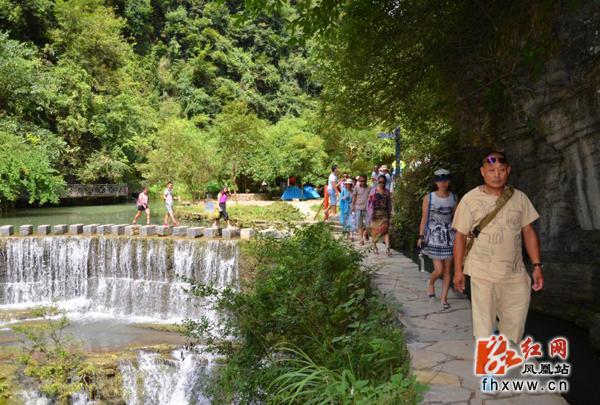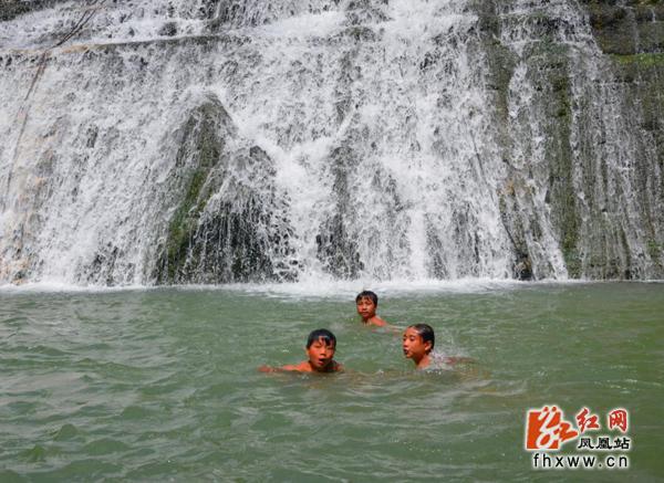 红网凤凰站8月5日讯(通讯员 刘伟)8月4日,游客在凤凰县廖家桥镇飞水谷景区游玩。炎炎夏日,飞水谷景区群山抱绿水,碧波绕青山,壮观大气,景色宜人,全国各地游客纷纷慕名而来亲近自然,感受清凉。