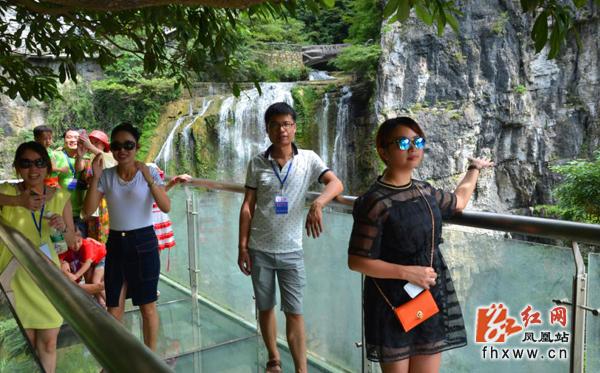 游客在玻璃栈道上留影