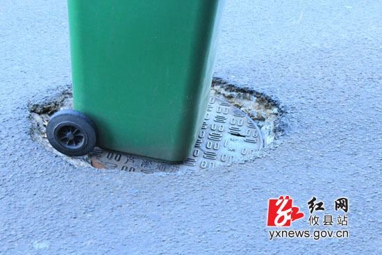 地上有个很大的洞?根据黄先生所提供的线索记者来到了当时事发的地方。记者看到这里确实有个洞,而且这个洞竟然就是一个窨井。记者观察发现,该处窨井井盖并没有被盗,井盖制有“芦淞通讯”应该是归属某个通讯公司的。井盖与路面并不是齐平的,而是凹陷在路面下,最深处将近20厘米,俨然成为了一个陷阱。记者到现场时附近的居民已经在该处用塑料垃圾桶做了防护,以免过往车辆发生意外。