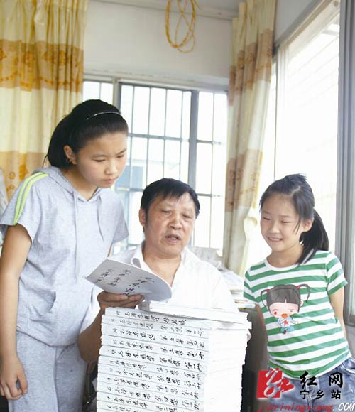 红网宁乡站8月13日讯(分站记者 龚再蓉)8月11日,宁乡县城龙凤花园小区的一套住宅内,62岁的刘棉良老人正带着两个孙女学习《毛泽东选集》。这套《毛泽东选集》是老人用毛笔抄好的,而这一抄写过程一共延续了820多天,写秃毛笔70多支。这一充满毅力的坚持,让他迷上了练习书法,取掉了戴了多年的老花眼镜,拥有了越来越棒的身体。刘棉良出生于灰汤,小时候读的书并不多,初中都没上完。2008年,他从一家企业退休后,产生了用毛笔抄写整套《毛泽东选集》的想法。“当时,我的毛笔字并没有什么基础,基本上没练习过,更没有习过帖,写的是'随手字'。”刘棉良表示,自己实施这一有些宏伟的抄写规划,主要有三个目的。一是系统学习《毛泽东选集》,加深对著作的理解与认识;二是提高自己的文化知识与书写水平;三是诠释持之以恒的精神,给后人树立刻苦学习的榜样。