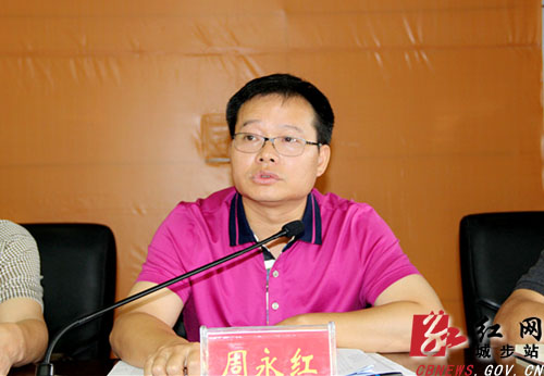 图为县委常委、组织部长、县总工会主席周永红对全县“党代表进百室走千村入万家”活动进行部署推进。黄艳萍摄