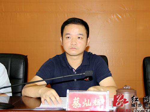 图为县委副书记蔡灿辉主持会议。黄艳萍摄