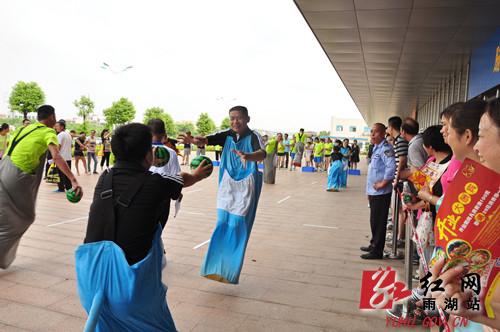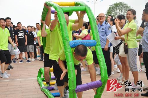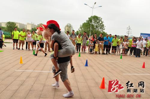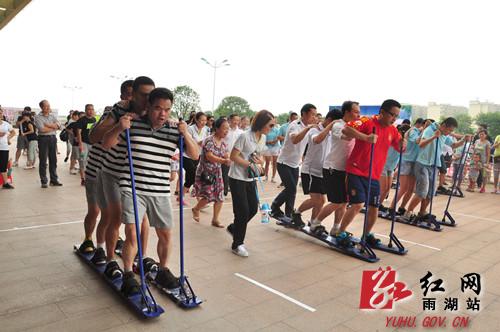 红网雨湖站8月17日讯(分站实习生 聂颖 李南曦)为深入推进全民健身示范城市创建工作,丰富广大机关干部的文体生活,进一步锻炼机关干部的团队精神和协作能力,引导和鼓励全区广大干部群众积极参与全民健身活动,使全民健身融入到社会文化大发展大繁荣的具体实践中来。8月15日,“2015年湘潭市雨湖区全民健身月系列活动之乡镇街道趣味运动会”在雨湖区义乌小商品城内举行。此次活动由雨湖区文体广新局精心筹备并负责组织实施,活动内容包括:财源滚滚、协力竞走、猪八戒背媳妇、袋鼠运瓜、奔跑吧青春和拔河比赛等六个趣味运动项目。全区十五个街道、乡镇派出代表队,逾200多名来自机关、乡镇街道(社区)干部群众参加。